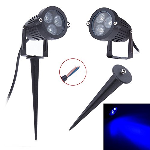 LEMONBEST 2pcs Bright Outdoor Landscape LED Lighting Decorative 12V DC Garden Path Tree Spot Lights, No plug (Blue)