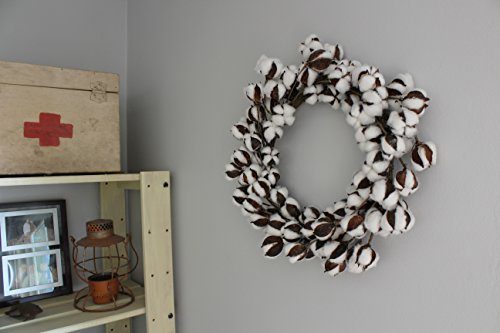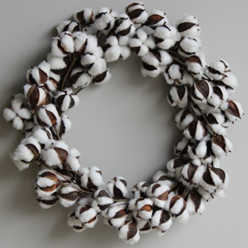 Cotton Boll/Ball Wreath - 16 inches to 21 inches, Adjustable Stems | by Urban Legacy