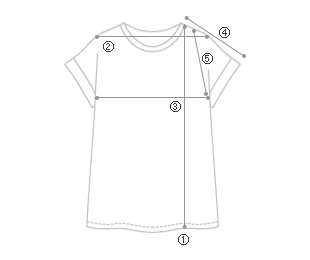 サイズ ①総長 ②肩 ③胸 ④小売 ⑤アームホール
