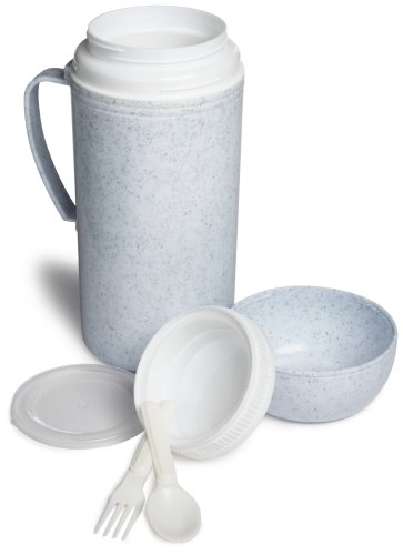 34 Ounce glass insulated food bottle with fork/spoon combo.