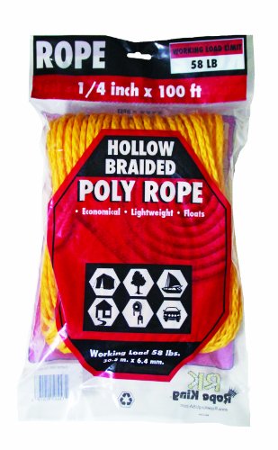 Rope King HBP-14100Y Hollow Braided Poly Rope 1/4 inch x 100 feet - Yellow