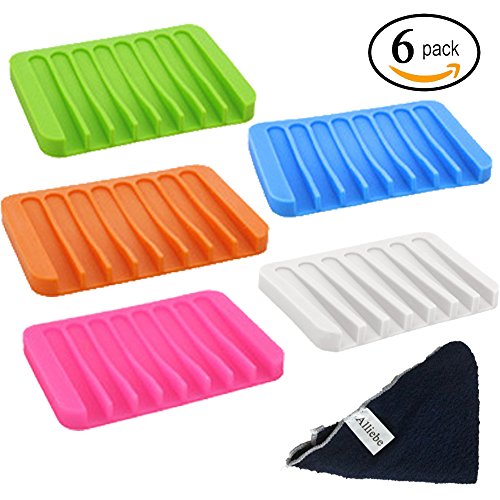 Alliebe 5 Pack Shower Soap Tray Soap Saver Soap Holder Drainer for Shower Bathroom Kitchen + Alliebe Dishwashing Cloth(Color Random)