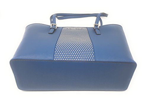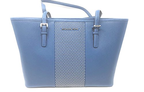 Michael Kors Women's Jet Set Travel Micro Stud Leather Carry All Tote Handbag Steel Blue