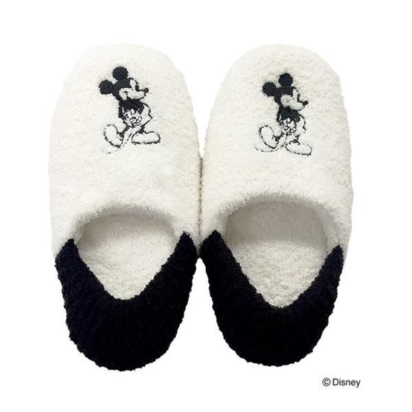 ホイップクリームのようなふわふわもこもこ素材のルームシューズ。ツートーンカラーの落ち着いたデザインが大人ディズニーのかわいらしさを演出します。ルームシューズはバッグに入っているので、プレゼントや旅行のお供にもぴったりです。 |