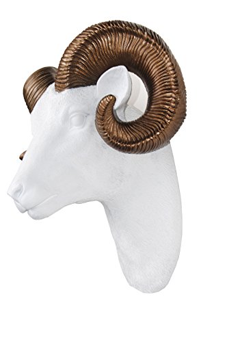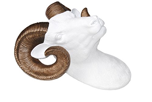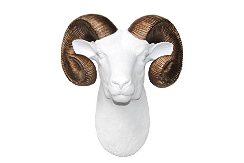 Near and Deer Faux Taxidermy Ram Head with Horns Wall Mount, White/Bronze