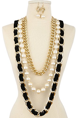 -. Feature : Necklace features velvet intertwined chain, simulated pearl strand and gold-tone chain. It also has a lobster closure and adjustable chain. Drop earrings feature one simulated pear, one chain link and french wire hook. / Designed in USA / 2 Piece Necklace and Earrings Set / Imported
