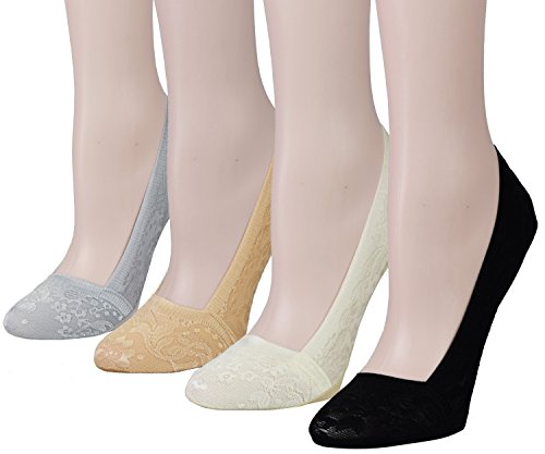 -. Title : Fitu Women's No Show Liner Lace Socks 4 Pairs Pack with Anti Skid Bottom