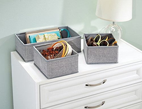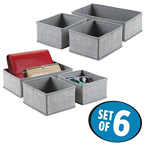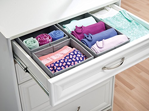 mDesign Fabric Dresser Drawer and Closet Storage Organizer for Underwear, Socks, Bras - Set of 6, Gray