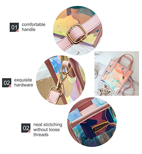 Tom Clovers Women's Holographic Transparent Tote Bag Handbag Clear Chain Shoulder Bag