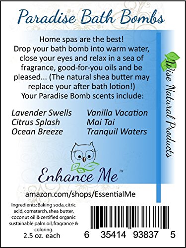 -. Binding : Misc. -. Brand : Enhance Me -. EAN : 0635414938375 -. Feature : BONUS - For limited time includes FREE Lip Balm. / ENDULGE - Bath Bombs are a home spa experience like no other / ORGANIC Contains organic Sustainable Palm Oil and other natural ingredients / PAMPER YOURSELF - Moisturize and enrich your skin with an enriching bath. / CRUELTY FREE - Handmade with SHEA Butter -. Label : Essential Me -. Manufacturer : Essential Me -. PackageQuantity : 6 -. ProductGroup : Beauty -. ProductTypeName : BEAUTY -. Publisher : Essential Me -. Studio : Essential Me -. Title : THANKSGIVING SPECIAL! 6 Bath Bombs Gift Set - w/FREE Lip Balm. Handmade with Shea Butter and Organic Sustainable Palm Oil - They Will Leave You Feeling Soft and Relaxed -. UPC : 635414938375