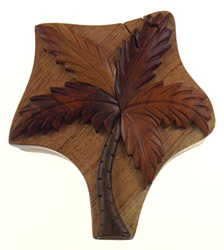 Studio : Hickoryville Publisher : Hickoryville Binding : Kitchen Product Description Handmade carved Palm Tree intarsia wood puzzle box bundled with Hickoryville instructions on opening and closing the puzzle box. This secret puzzle box is a beautifully handcrafted creation, high quality workmanship, made of natural wood. The box is a puzzle that comes apart into four pieces and discovers a secret space to keep special treasures. Inside storage space is approximately 1.6 inches x 2.9 inches. Every box is a unique, handcrafted creation and yours may vary slightly from the photos. 0