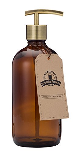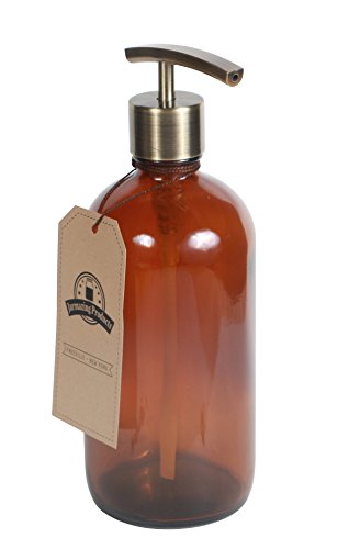 Amber Glass Jar Soap and Lotion Dispenser with with Modern Brass Pump - 16 oz - by Jarmazing Products