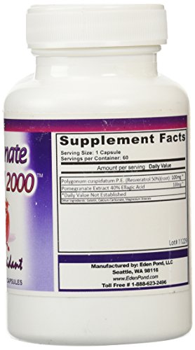 ReleaseDate : 2015-06-22 Studio : Eden Pond Publisher : Eden Pond Binding : Health and Beauty Product Description 4-Pack value of pomegranate resveratrol 2000 from Eden Pond. The natural antioxidant helps to keep free radicals in check, and helps maintain cell health. Some use this powerful antioxidant blend as a fat burner, and reports of efficacy are stunning. 0