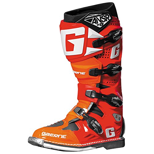 - Dual stage pivot system - This revolutionary new system is patented and exclusive to Gaerne and is certainly going to be a hit. The first pivot is attached to the "razorback". This provides a rigid component that offers strong lateral support while a glide plate keeps the upper in a term and upright position. The second pivot is fixed on a sliding glide that allows the riders foot to feel natural while on the peg in a shifting or braising situation - however, it will "bottom out" and absorb shock in the case of over jumping a jump or in the case of unwanted compression