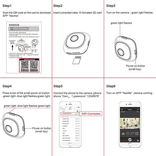 Multi-function : Gapless recording, cyclical recording , Wifi function. It's small size and weight gives you versatility. Not only can it be used indoor baby monitoring camera, also can be used outdoor as your selfie camera, wearable camera, drone camera or your pet camera. Tips: Hold the camera, turn it 90 degrees clockwise, then recover to the original position , 3S later, it will take pictures automatically. Note: when the camera is turned on, it starts recording, also the wifi is on.