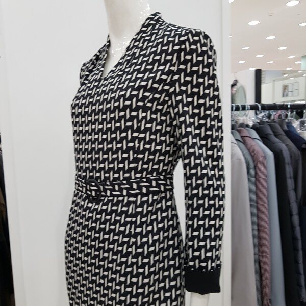 세련된 블랙 컬러감에 고급스러운 슬림한 라인으로 고급스럽게 입기 좋은 정장 원피스 입니다. 브이넥으로 여성스러움을 더해주고 깔끔한 디자인으로 코트와 코디하기 좋은 간절기 원피스 입니다. 부담스럽지 않은 미디 기장감으로 편안한 착용감을 주는 디자인 입니다.