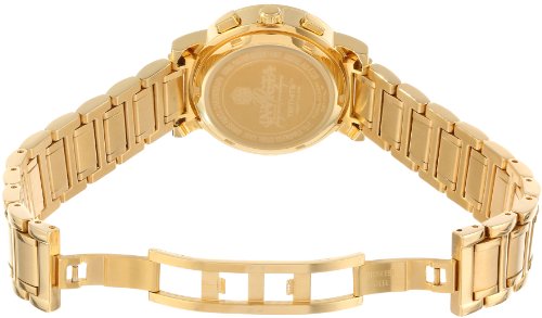 Add a dash of high style to any ensemble with this limited edition gold-tone Invicta chronograph timepiece for women, which is elegantly topped by a bezel ringed with 16 hand set sparkling diamonds. The diamonds are GH in color and SI in clarity. The shimmery mother-of-pearl dial face includes three golden subdials--with measurements for 1/10th of a second, 60 seconds, and 30 minutes of elapsed time--as well as luminous Tritnite hands and hour markers, small minute indexes, and a date window at 4 o'clock. The round watch case measures 35mm wide (1.38 inches) and 11mm thick (0.43 inches). It's complemented by a stainless steel bracelet band that mixes polished and satin links. Other features include a precise Swiss quartz movement, a scratch-resistant sapphire crystal, and water resistance to 100 meters (330 feet)--offering protection from accidental splashes as well suitable for swimming, snorkeling, and light recreational diving.II Collection