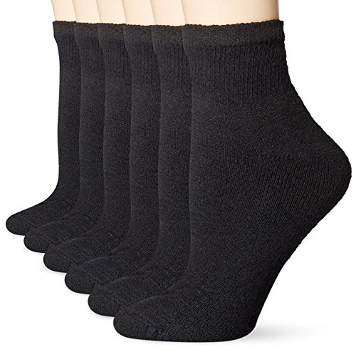 Fruit of the Loom Women's 6pk Plus Size Cushioned Black Ankle Socks - Large (Shoe Size 8-12)