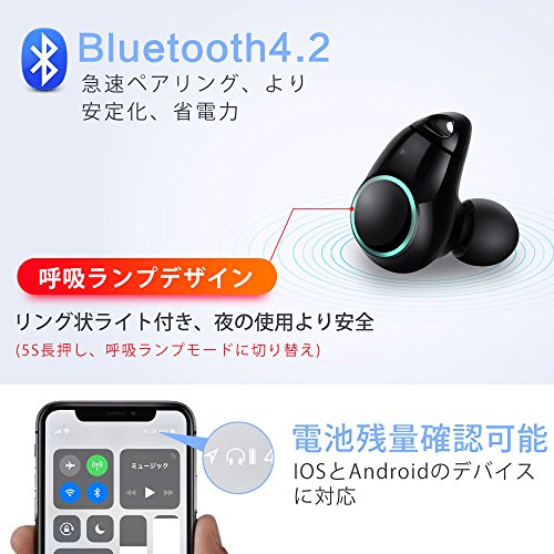 形状:タッチ式 リングライト 完全ワイヤレスBluetoothイヤホン