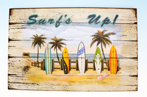Coastal Beach Scene Surf's Up Surfboards Wooden 16 Inch Sign Plaque Wall Decor