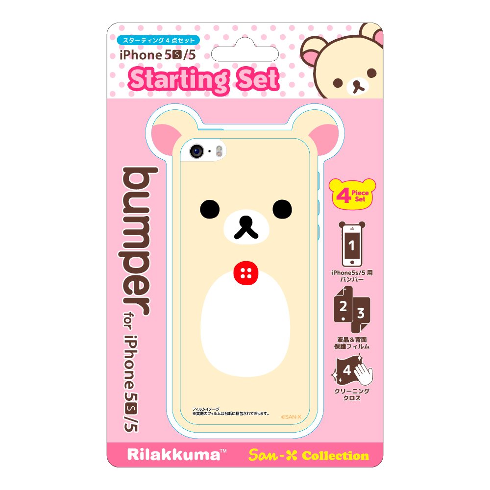 "YY00411" is a 4 piece set of TPU bumper, duplex design film, cute pattern cleaning cloth to dress up fashionably iPhone 5s / 5 featuring pretty design of Korilakkuma.
