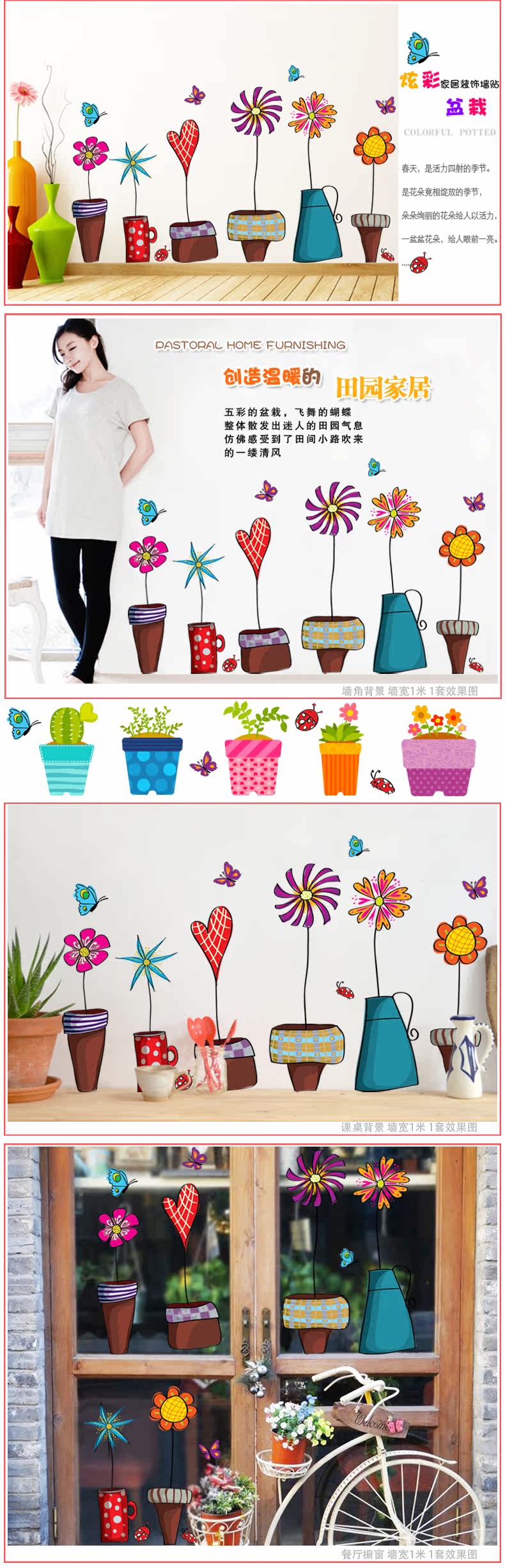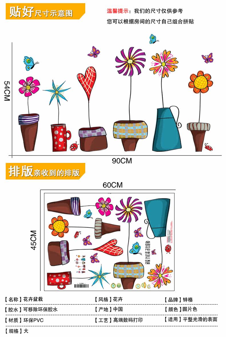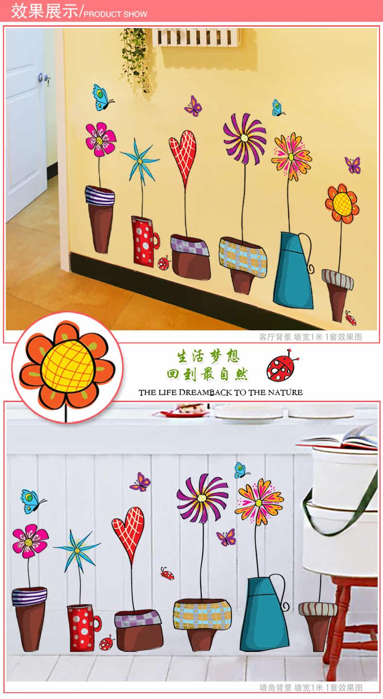 田园卡通花盆腰线贴家居装饰可移除墙贴客厅卧室儿童房背景墙贴纸