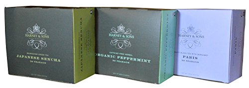-. Binding : Misc. -. Brand : Harney & Sons -. EAN : 0722512325777 -. Feature : Japanese Sencha is a Pleasant Green Tea Blend Mid Season Sencha with a Light Citrus Accent / Organic Peppermint is Kosher, Caffeine-Free, and USDA Organic / Paris is a Fruity Caffeinated Tea with Vanilla and Caramel / Each Box Contains 50 Individual Tea Bags -. ProductGroup : Grocery -. ProductTypeName : GROCERY -. Title : Fine Tea Set Japanese Sencha (Nourishing Green) Organic Peppermint (Caffeine-Free Herbal) and Paris(Fruity-Black Tea) -. UPC : 722512325777