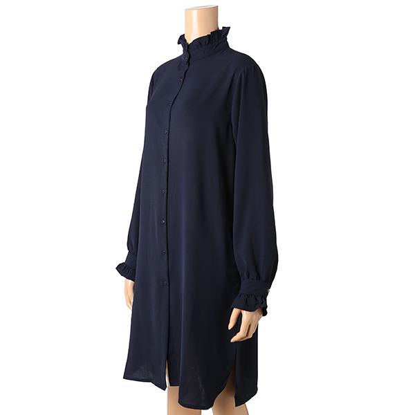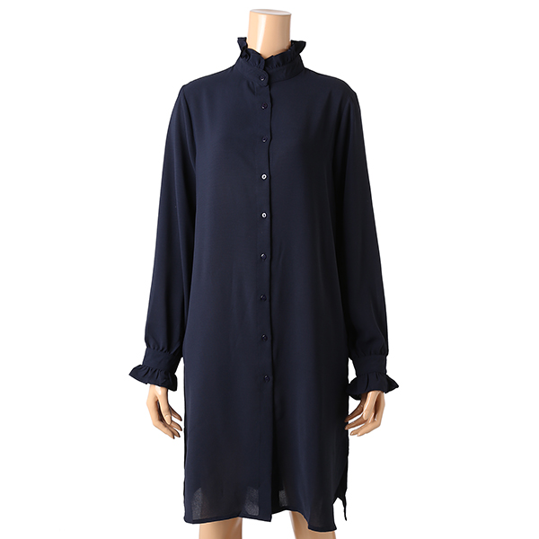 넥디자인의 프릴과 소매의 프릴 디테일이 예쁜 롱 셔츠겸 원피스입니다.