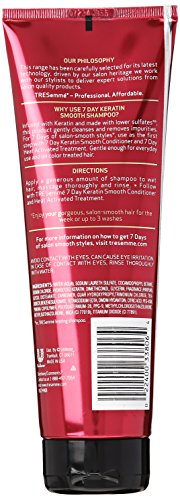 TRESemmé 7 Day Keratin Smooth Shampoo, made with lower sulfates vs. the leading TRESemmé shampoo, will gently cleanse and remove impurities