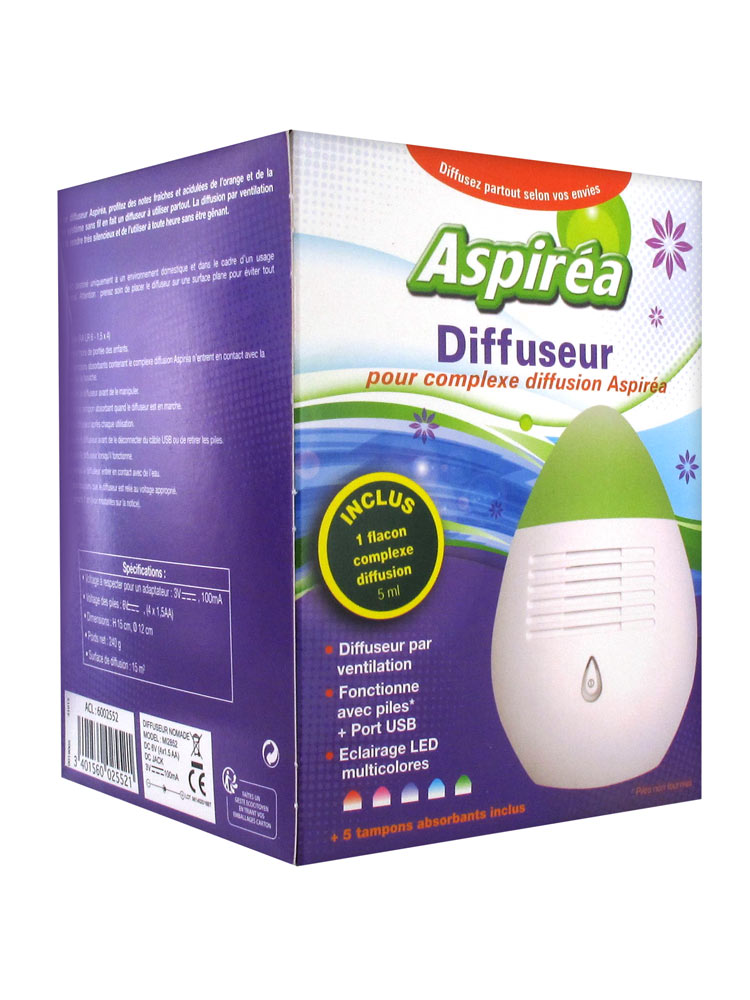 Aspiréa Diffuser + 1 Diffusion Complex 5ml is a nomade diffuser that will allow you to benefit of fresh and acidulous notes of orange and litsea.