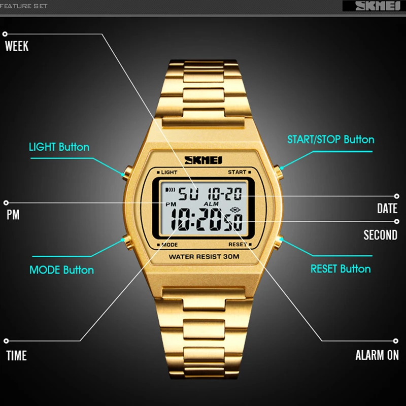 Feature:Auto Date,Shock Resistant,Week Display,Water Resistant,Stop Watch,Chronograph,Back Light,LED display,Repeater