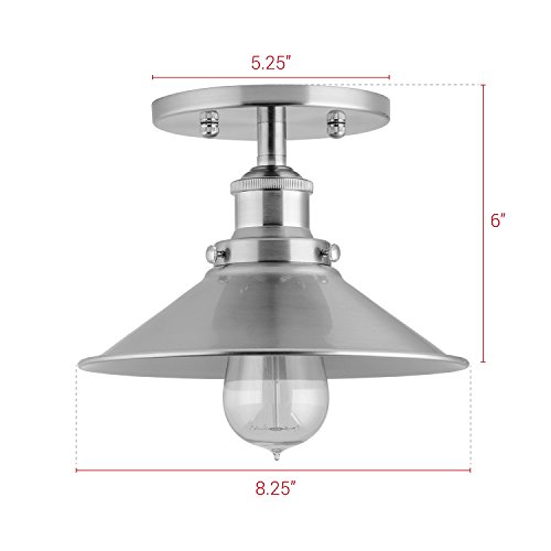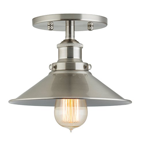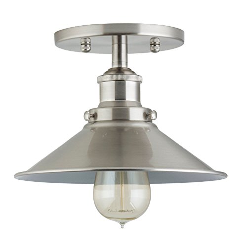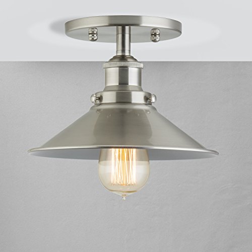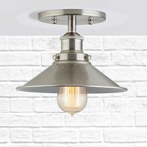 Linea di Liara Andante Industrial Factory Semi Flushmount Ceiling Lamp - Brushed Nickel One-Light Fixture with Metal Shade Exposed Hardware - 5-Inch Canopy - Downlight Modern Vintage LL-C407-BN