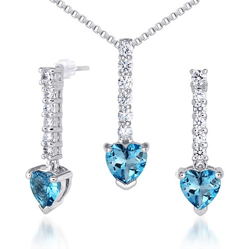 -. Title : London Blue Topaz Pendant Earrings Set Sterling Silver Rhodium Nickel Finish Heart Shape 2.75 Carats