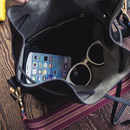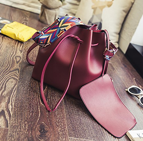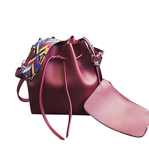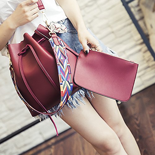 -. Title : Women's PU Leather Drawstring Bucket Bag Crossbody Bag Shoulder Bag Purse With Colorful Strap