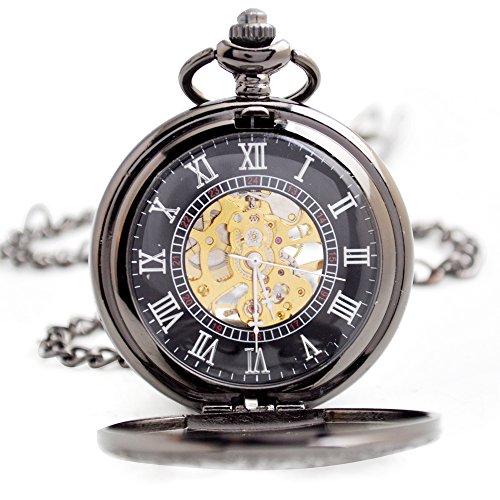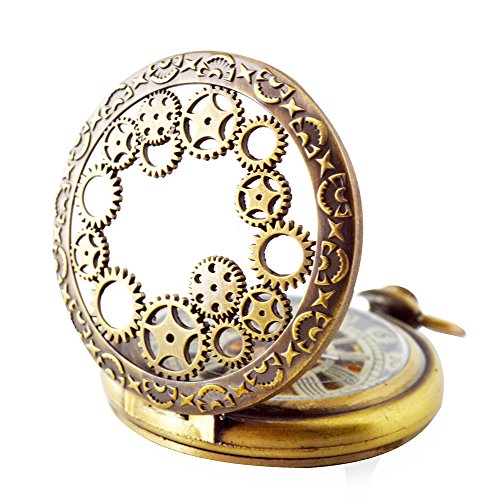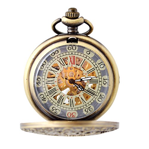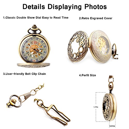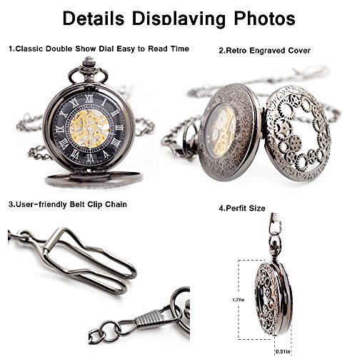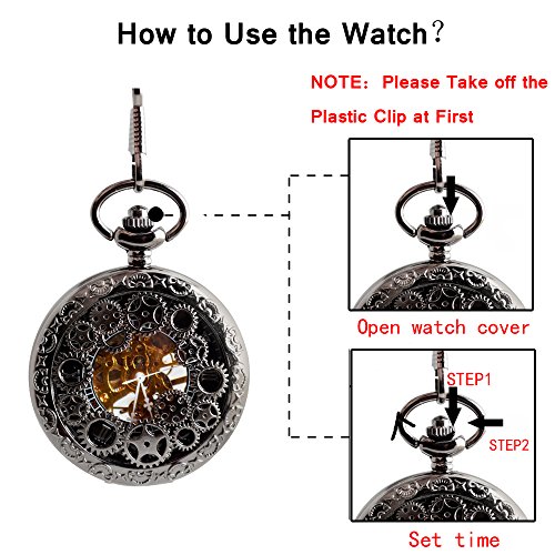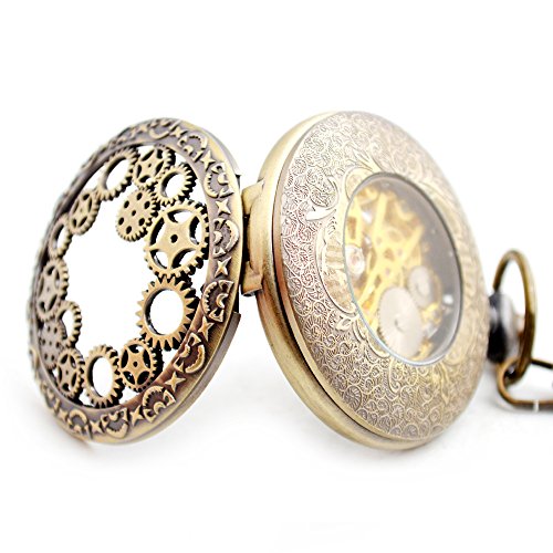 -. Title : BoShiYa Mens Vintage Skeleton Pocket Watch Steampunk Windup Half Hunter Mechanism Gear Cover with Chain