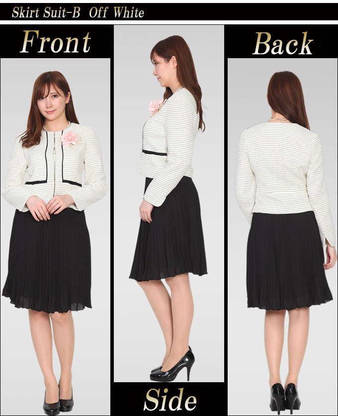 | コメント | 20代、30代ママに人気のノーカラージャケット2ボトムレディーススーツです。 サイズは小さいサイズ 7号 から 9号 11号 13号 大きいサイズ 15号 の5サイズ展開 お色はブラックとオフホワイトの2色になります。 セットされている2枚のスカートで、入園式から卒園式まで印象を変えて着回しが出来る 春のセレモニーには最適なママスーツです。 トレンドのノーカラージャケットは、繊細なボーダー柄をグログランリボンでトリミングを施し、 シックでフェミニンな印象に仕上げました。 スカートも共生地でふんわりとクラシカルなXラインと、 プリーツでフォーマル度をアップさせたエレガントなスカートを 入園式、卒業式に合わせて着こなせます。 これから迎える卒園式や入学式、学校行事、結婚式、謝恩会にも使えます。 おしゃれなママや賢いママにオススメするママコーデです。 ジャケット、共布SK、プリーツSKの3点セットです。(コサージュは別売りになります。) |