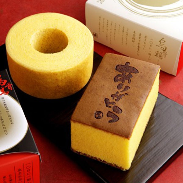 | セット内容 | 烏骨鶏かすてら(ありがとうの焼印入り)×1、烏骨鶏バウムクーヘン×1 |
