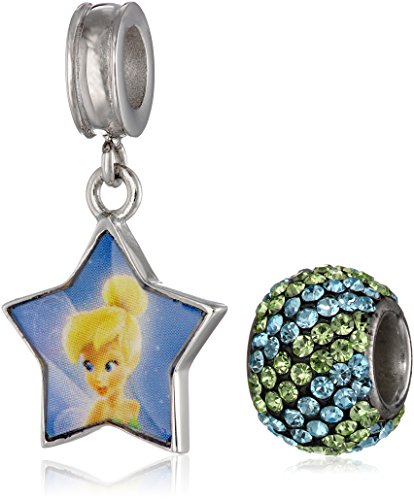 Enameled star-shaped Tinker Bell bead and coordinating round bead with faceted faux stones
