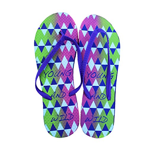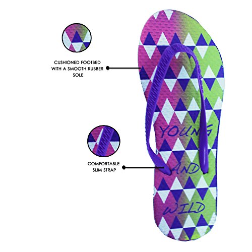 (Chatties)/Women's/Sandals/DIRECT FROM USA/Chatties Women's Casual Purple Rubber Flip Flops Slippers, Triangles Print
