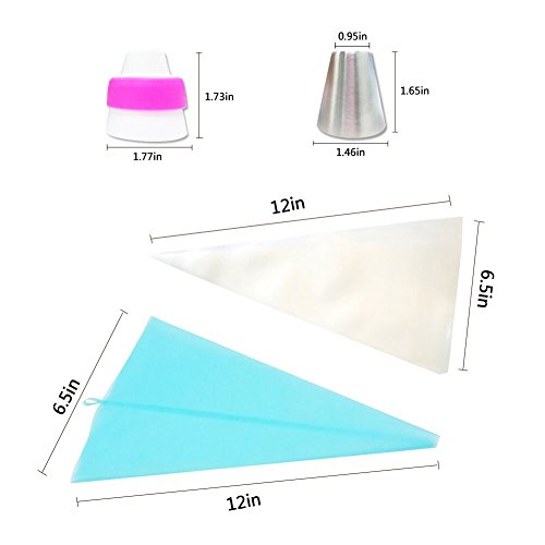 - Multiple Choices: 1 Tri-Color coupler support different colors of sugar coating, 1 pcs reusable silicone cake bags with 10 pcs disposable pipe bags, make the beginners easier to get started.