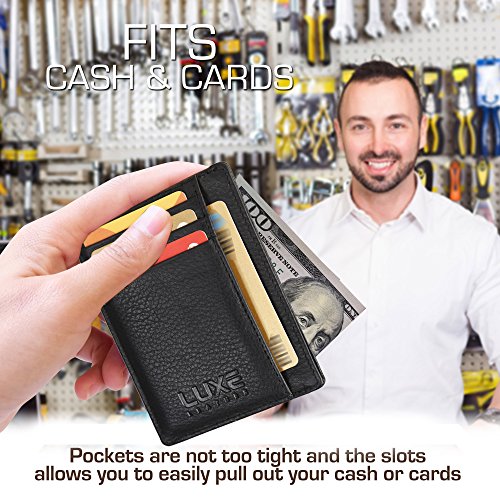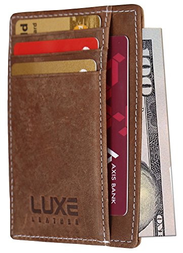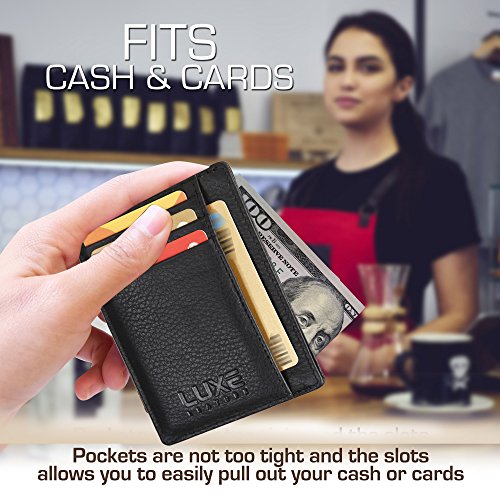 -. Title : Luxe Leather Front Pocket Slim Minimalist RFID Blocking Wallet for Men & Women