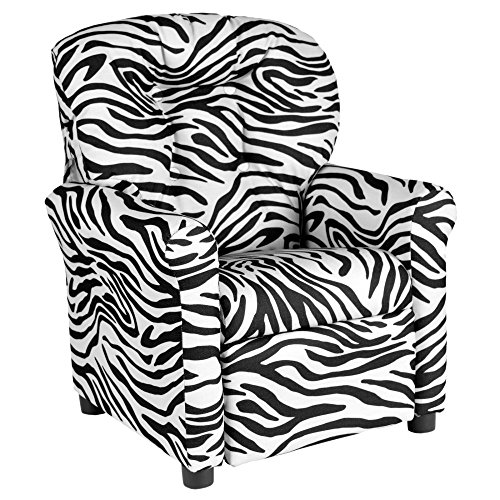 - Feature : Dimensions: 19.75L x 20.5W x 27H in. / Recommended for ages 5-10; 78 lb. weight capacity / Smooth polyester upholstery in funky zebra print / High tufted back / Recline position for ultimate napping