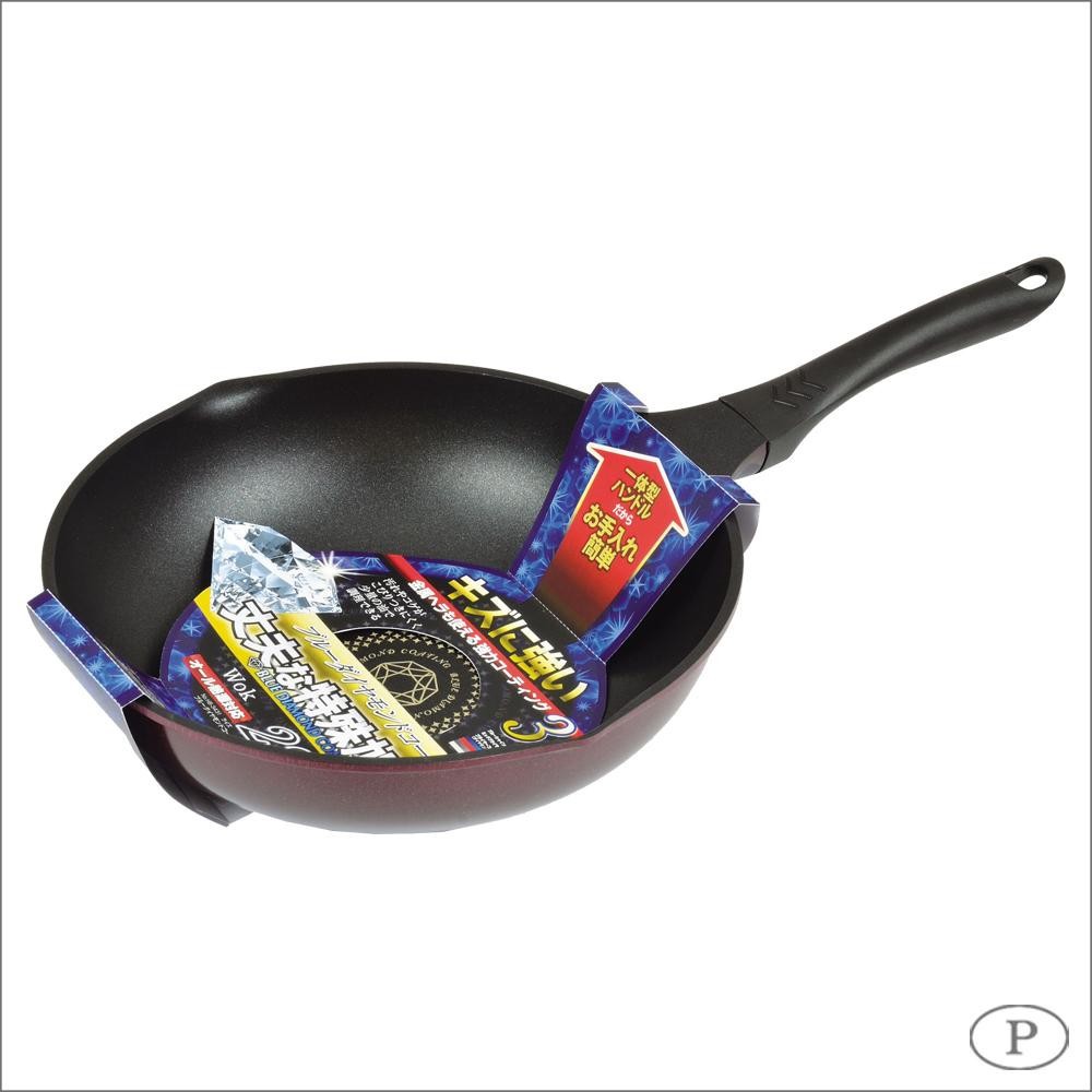 ダイヤモンド粒子配合の強力3層コーティングでキズに強く金属ヘラも使えます。さらに汚れやコゲがこびりつきにくく少量の油で調理できます。 |
