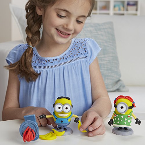 It's minion madness at the Make a Minion workshop! This set has lots of fun tools and 11 cans of Play-Doh compound to create custom minions with almost any costume imaginable. To start, simply choose 1 of the 3 minion bases and pairs of arms, shape a minion body with Play-Doh compound, and attach it to the base and arms. Don't forget the eye(s)! Add fun facial expressions with the 3-sided stamping tool, and customize with outrageous outfits and accessories using the mold plate. Squeeze silly shapes with the fart blaster extruder, which also fits in some of the minions' hands (you'll have to supply the fart noises yourself). Who will the next minion be – a pirate? A king? Bob? It's all up to the imagination! Despicable Me, Minion Made, and all related marks and characters are trademarks and copyrights of Universal Studios. Licensed by Universal Studios Licensing LLC. All Rights Reserved. Hasbro, Play-Doh, and all related properties are trademarks of Hasbro.Feature