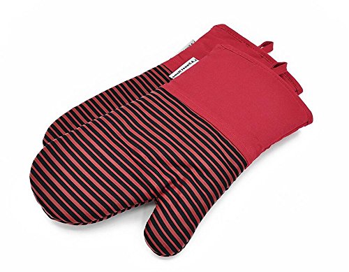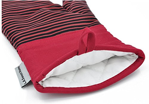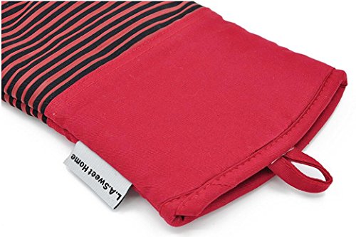 L.A. Sweet Home Stripes Silicone Oven Mitts, 1 Pair of Professional Heat Resistant Potholder Gloves, A03 Red