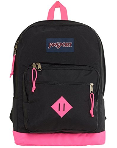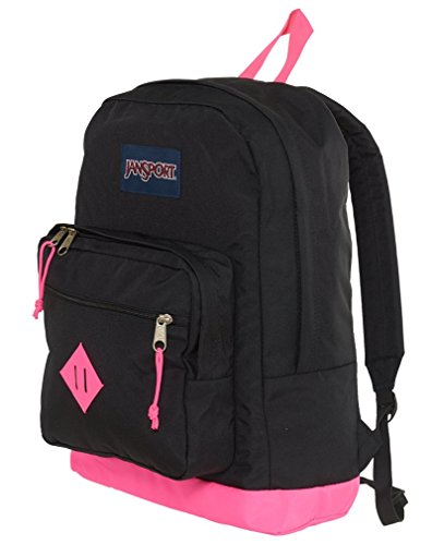 JanSport City Scout Backpack - New Black/Fluorescent Pink / 18"H x 13"W x 8.5"D