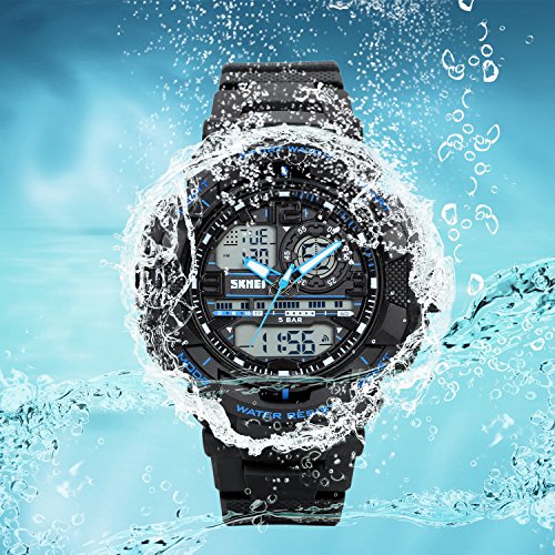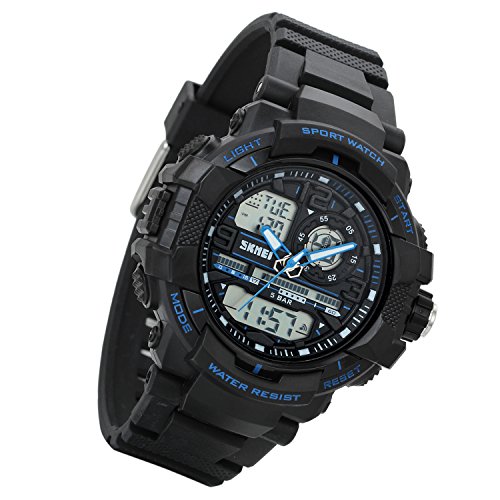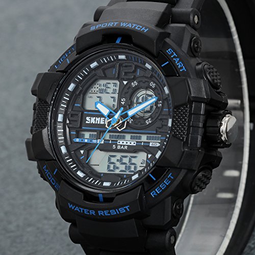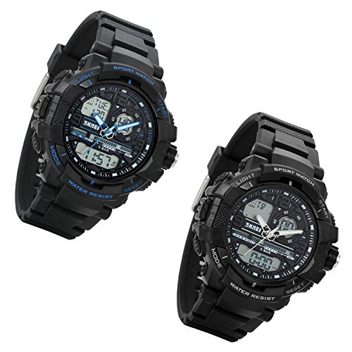 -. Title : Lancardo 50M Water Resistant Dual Display 2 Time-Zone Digital Military Army Led Sports Watch(Blue,2Pcs)