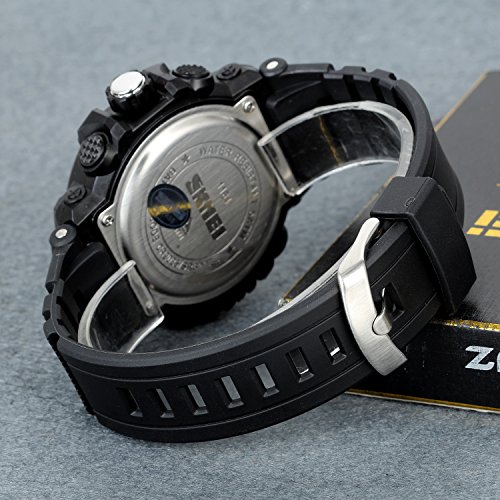 -. Feature : 100% Brand new watch, come with gift box printed Lancardo, Engraving service please contact me. / 2 pieces watch featuring Digital and Analog quartz dual display two time zone, black ABS case and PU band provide comfortable wearing experience;High quality acrylic watch face, durable and light than glass / Length: 10.6"(27.0cm), Case Dim.: 1.8"(4.6cm), Thickness: 0.7"(1.7cm), Band Width: 0.9"(2.2cm) / Multi-Function: Calendar Date /Week /Month, Alarm, Water Resistant, LED Display, Shock Resistant, Stop Watch, Chronograph / Water Resistant up to 5 atm or 50 m(164FT), Suitable for swimming, white water rafting, non-snorkeling water related work, and fishing. Not suitable for diving, do NOT press any key underwater.