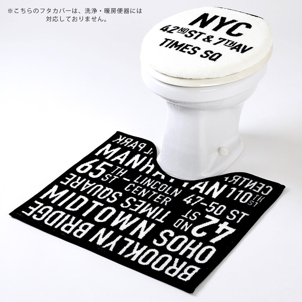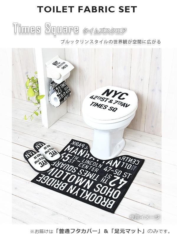 トイレファブリックシリーズ「タイムズスクエア」のフタカバー&足元マット2点セットです。