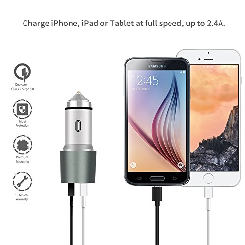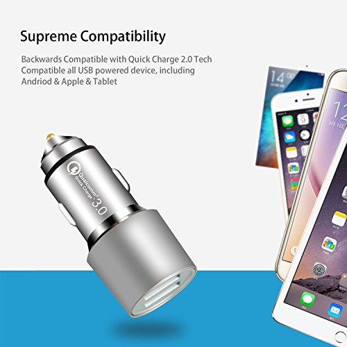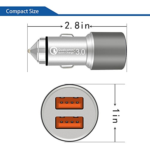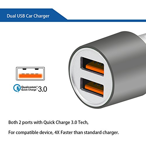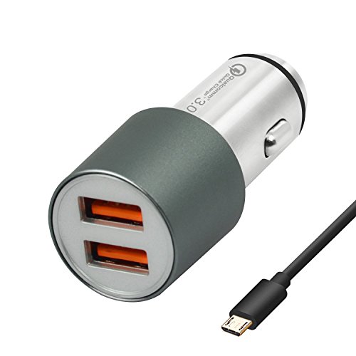 JDB Quick Charge 3.0 36W Dual USB Car Charger with Dual QC3.0 Ports and 3' Micro USB Cable – Gray
